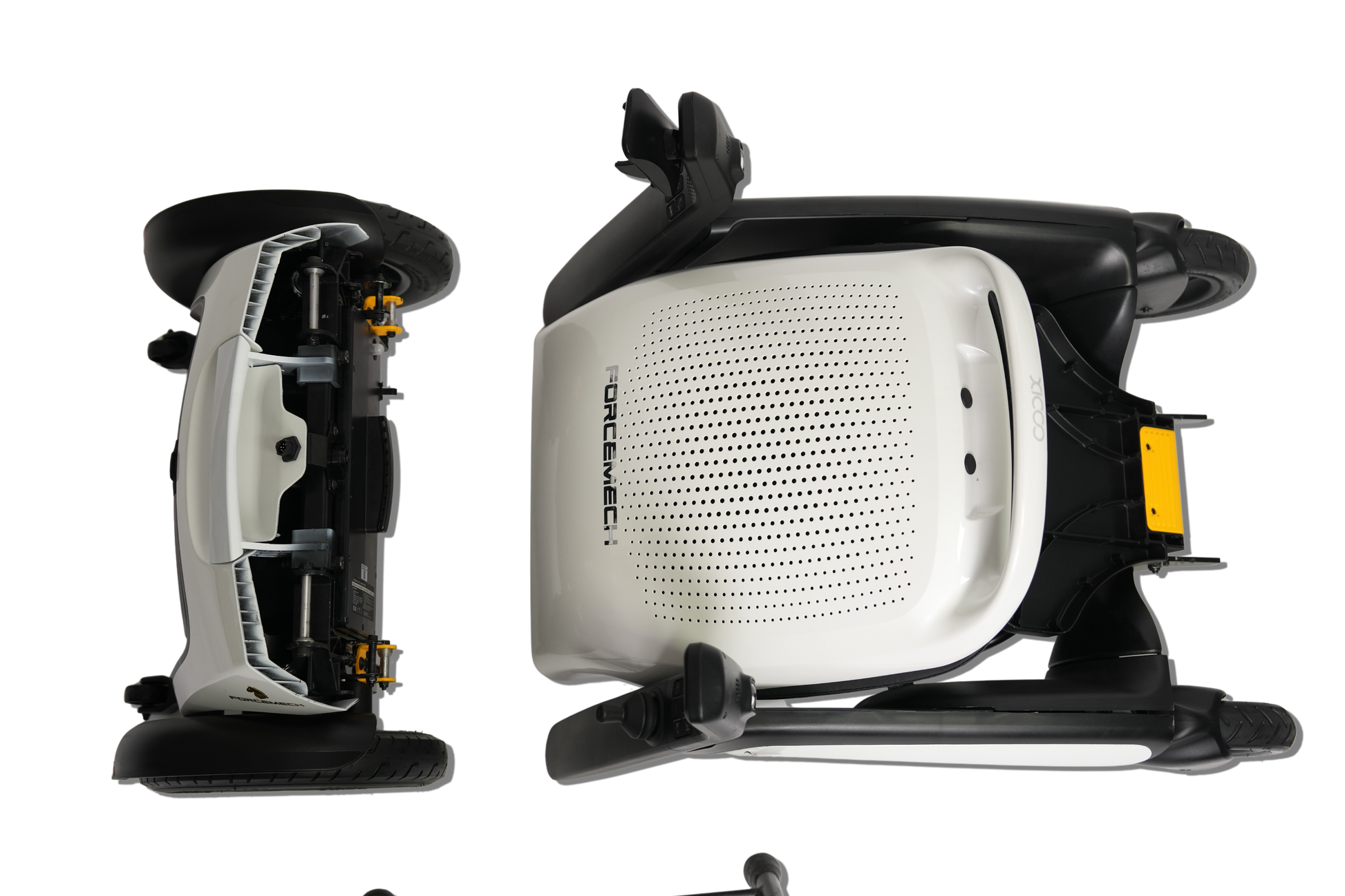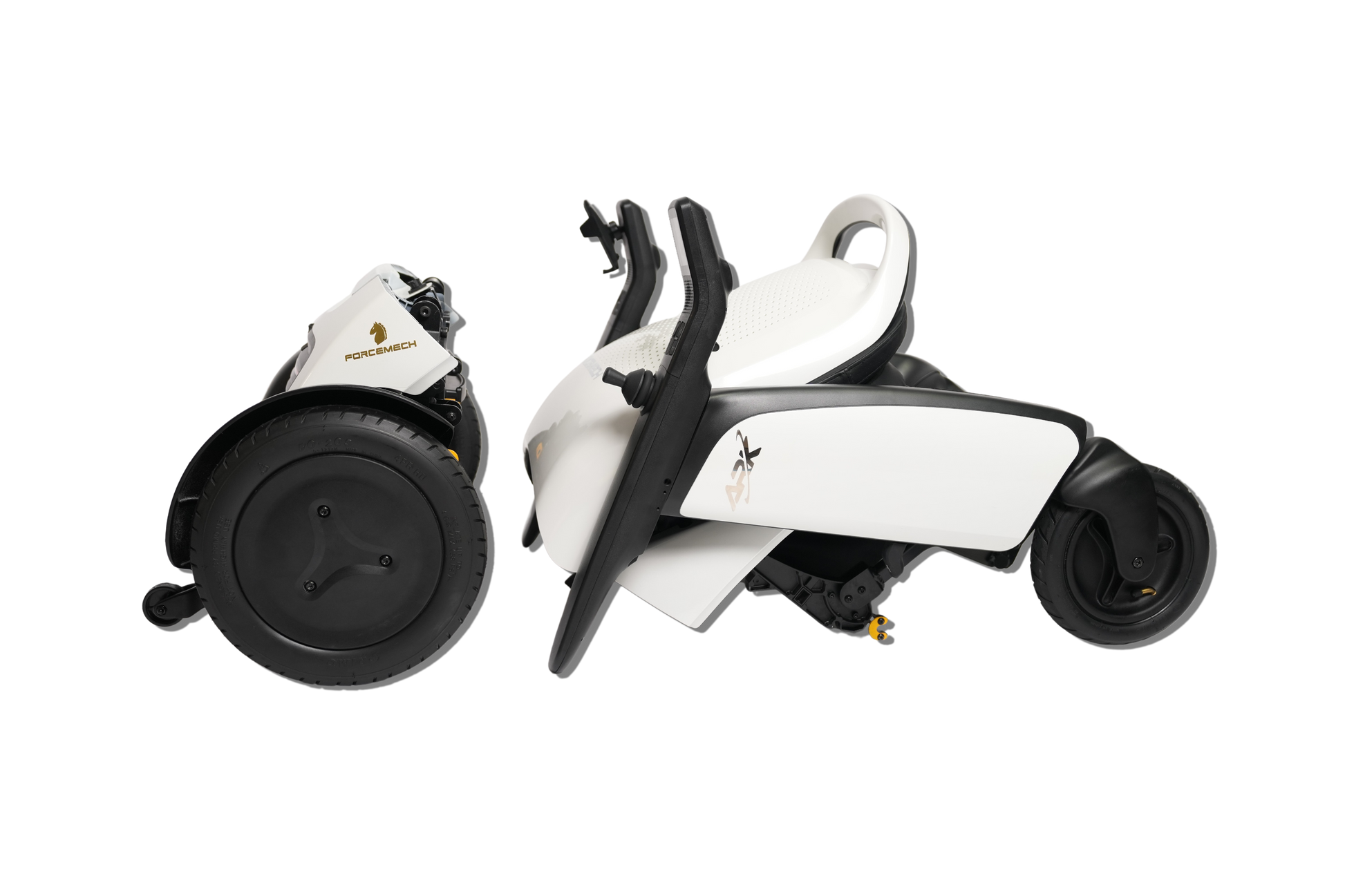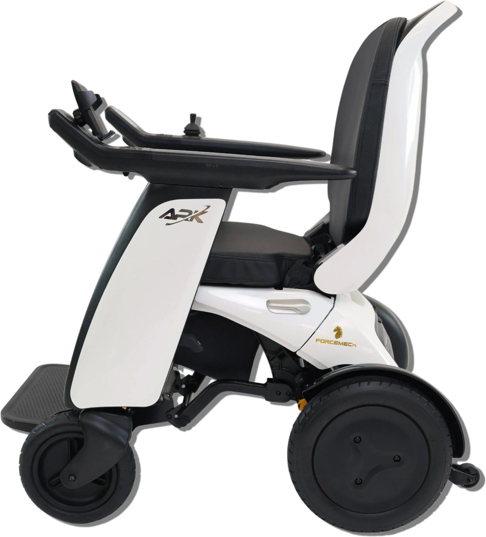 The Forcemech ARK redefines luxury in mobility, packed with innovative features that enhance comfort, convenience, and performance. Some of the key functions of this innovative power chair are Bluetooth connectivity for music, phone calls, etc. Built in phone holder, LED Headlights, Automatic rear LED brake light, Dual USB charging ports, LED Dash Screen, Controller side Automatic/Manual mode switching, Zero friction manual mode, Dual 300 watt electric brushless motors, Foldable armrest, Reclining backrest, Cloud-Pedic removable leather seat and cushions and a quick breakdown into 2 pieces for easy portability.