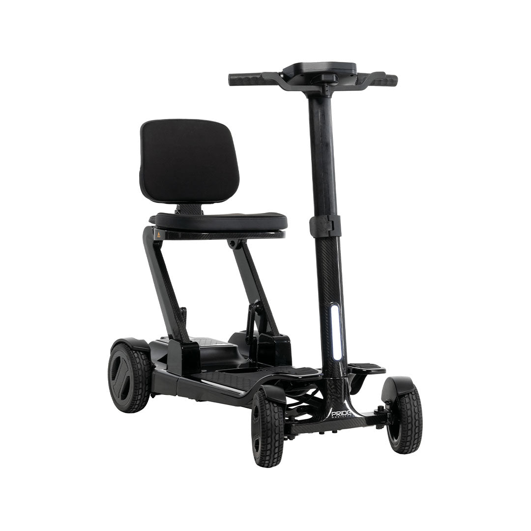 Harnessing the power of its full carbon fiber frame, the Go Go® Carbon offers exceptional portability in a four-wheel scooter. It weighs just 35 pounds without its (lithium) battery, folds down in seconds for convenient transport and storage, and can be towed like luggage through airports and other environments.