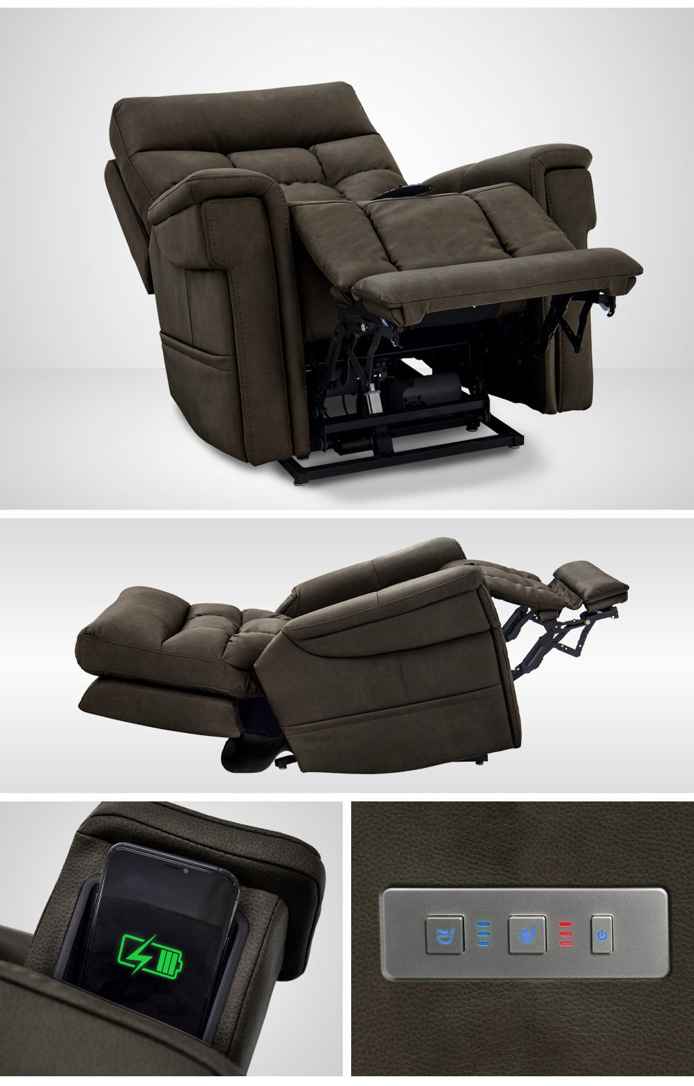 When you need to soothe away the stress of your day, the Ultra Collection by VivaLift® Power Recliners is there for you! New, exclusive VivaLift technology provides the feeling of weightlessness and allows any consumer to achieve the ideal comfort position for their needs. The advanced massage system delivers gentle pressure on your lower back. Choose from three intensity settings for the perfect massage!